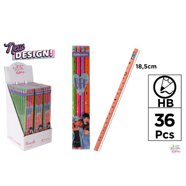 GRAPHITE PENCIL HB BDG, Graphite pencils with a wooden body decorated with Big Dreams Girls designs.
