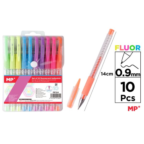 MP COLOURED FLUORESCENT BALLPOINT PEN (10PCS)