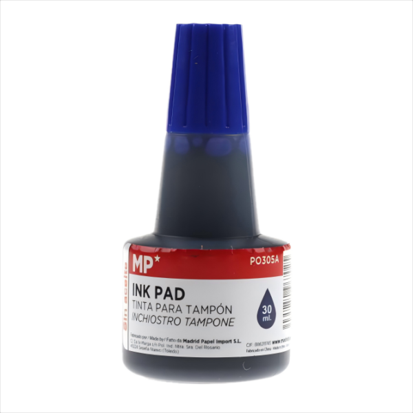 Ink for inking stamp pads. 30 ml bottle. Colour: blue