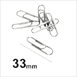 Clips to hold documents. Labelled. Chrome-plated or coloured. Box of 10 boxes. Size : 33mm