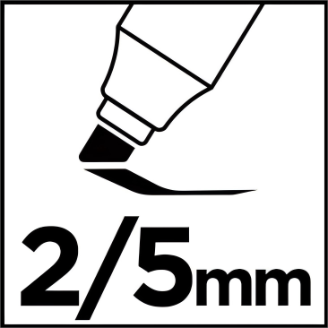 Two-point permanent marker X-40 with plastic body and cap with clip in the colour of the ink. Non-toxic indelible permanent ink, suitable for many surfaces. It can be uncapped for up to a week without drying out. Double fiber tip: one chisel 2-5 mm thick and the other round 2 mm. Size 130 mm.